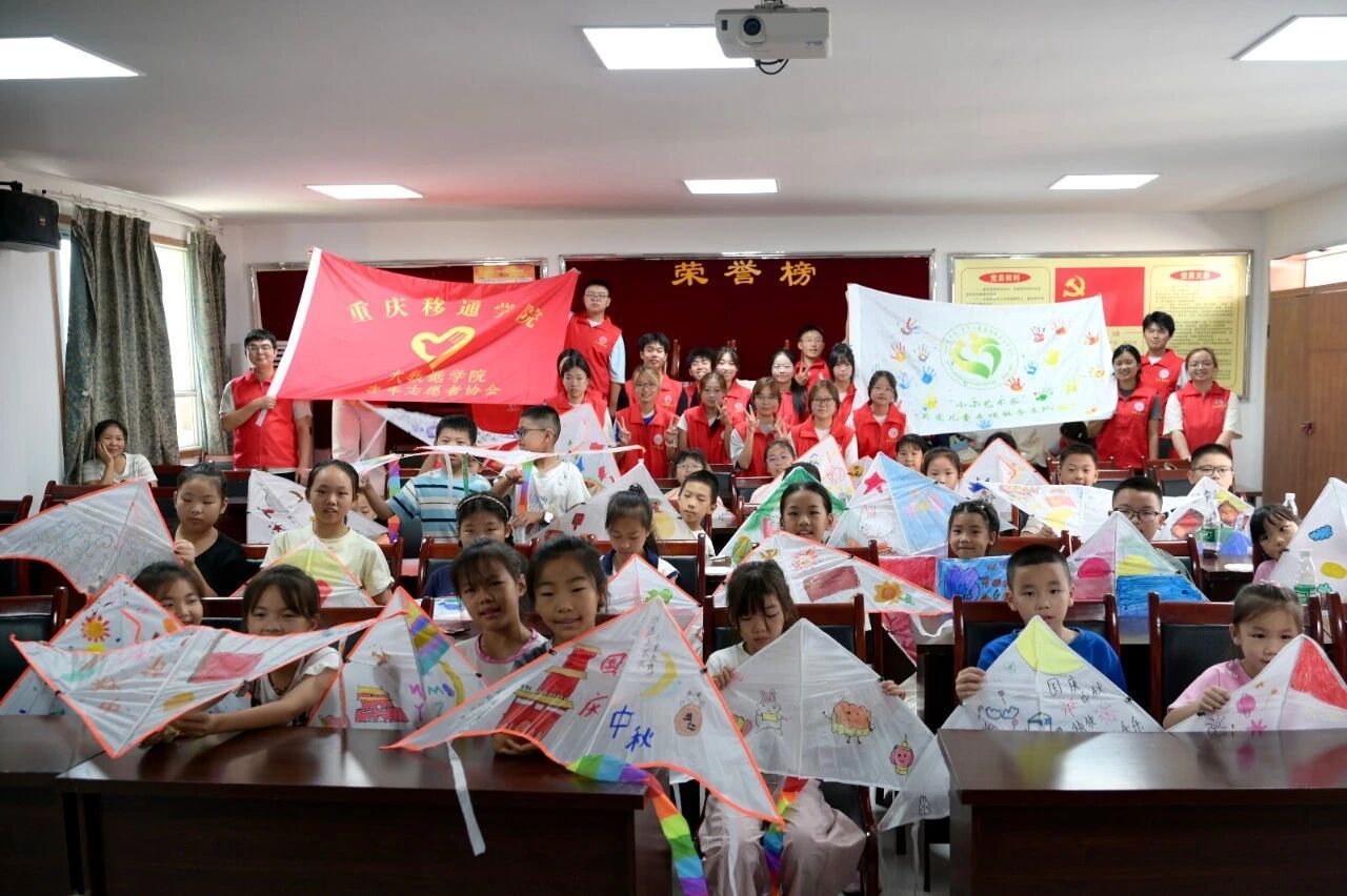 此次双节艺术志愿活动在欢声笑语的合影中圆满落幕。全体志愿者与小朋友手持风筝作品并肩而立,镜头不仅记录下孩子们的纯真笑脸与多彩作品,更定格了志愿力量与童真心灵碰撞的温馨瞬间。此次活动不仅为孩子们搭建了展现自我的艺术平台,也让他们在实践中感受传统文化魅力与双节团圆氛围。未来,戏剧影视学院和大数据学院的志愿支队将继续开展此类活动,为青少年成长提供更多助力。