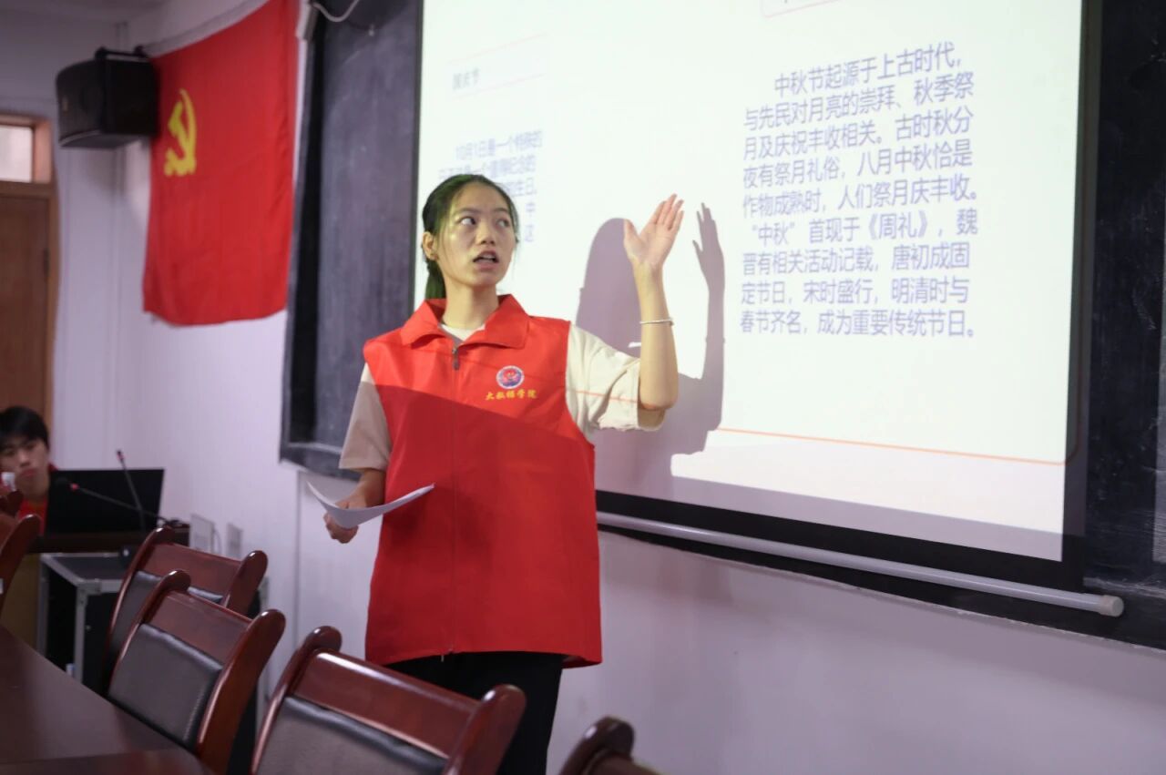 活动当天,志愿者提前抵达现场,迅速完成场地布置,以饱满的状态静候小朋友们到来。待孩子们有序入场后,活动正式拉开帷幕。志愿者通过提前制作的 PPT,生动讲解秋天放风筝的传统习俗与文化内涵,详细介绍“龙”象征吉祥、“蝴蝶”寓意灵动等经典风筝造型的含义;同时结合双节主题,展示灯笼、国旗、明月等绘画素材,引导小朋友们构思画面布局,启发创作思路。