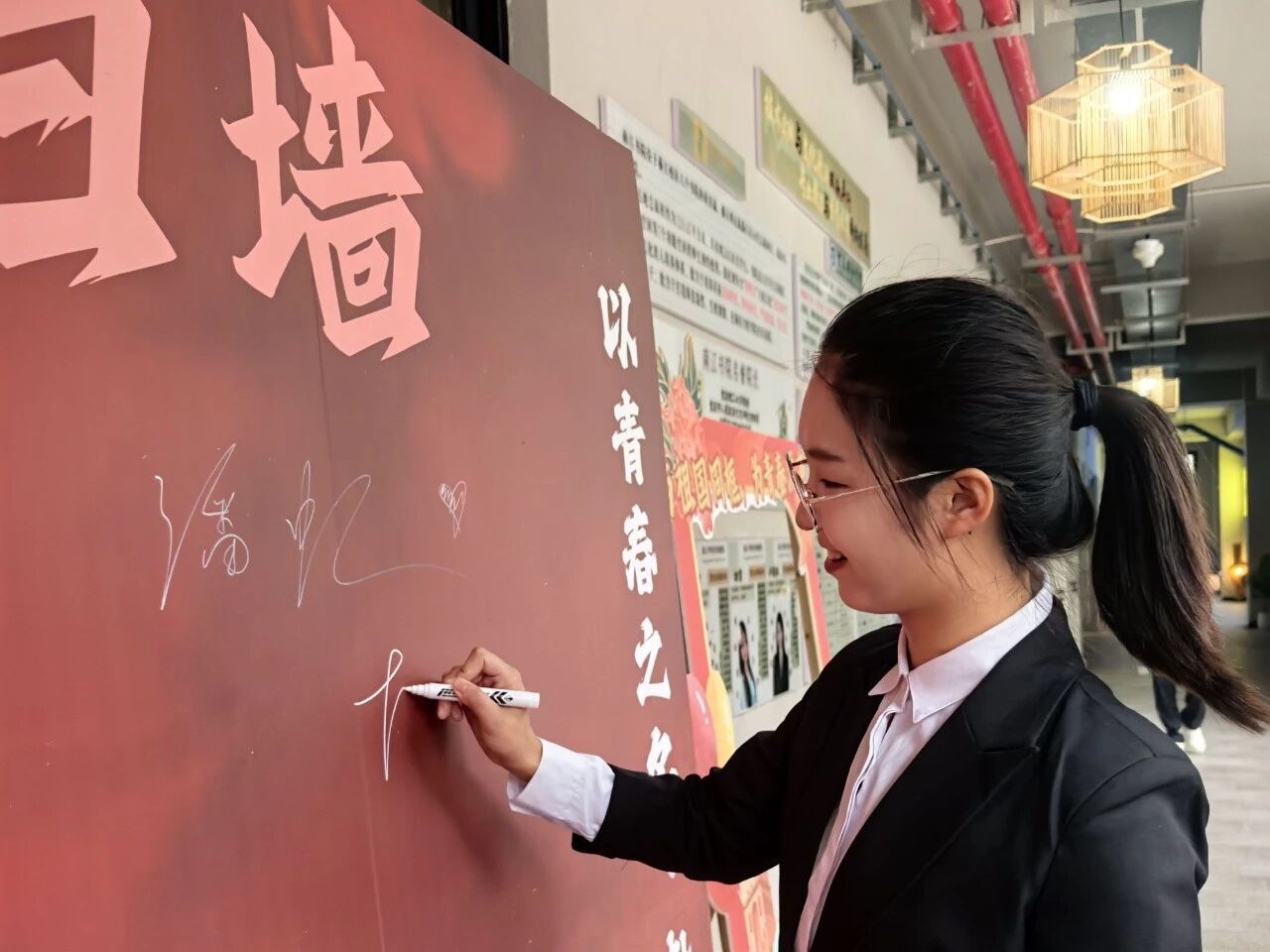 “爱国表白墙”前,戏娃们将赤子之心凝于笔端。方寸之间,心声交汇,使“爱党爱国”从口号化为信仰,映亮青春脸庞。