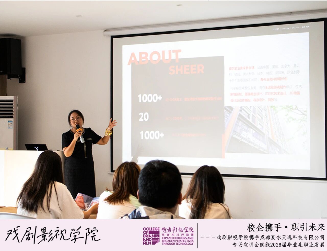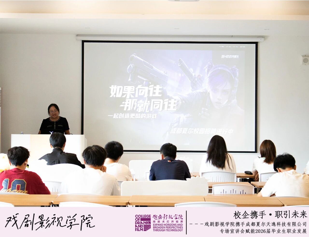 为助力2026届毕业生规划职业方向,搭建就业桥梁,10月16日,戏剧影视学院特邀成都夏尔天逸科技有限公司人力总监陈莉女士在南江书院·启迪思维室举办专场宣讲会,深入探讨游戏制作板块的专业领域,为学子们搭建求职与学习的桥梁,吸引校内多名同学携作品与简历参加。