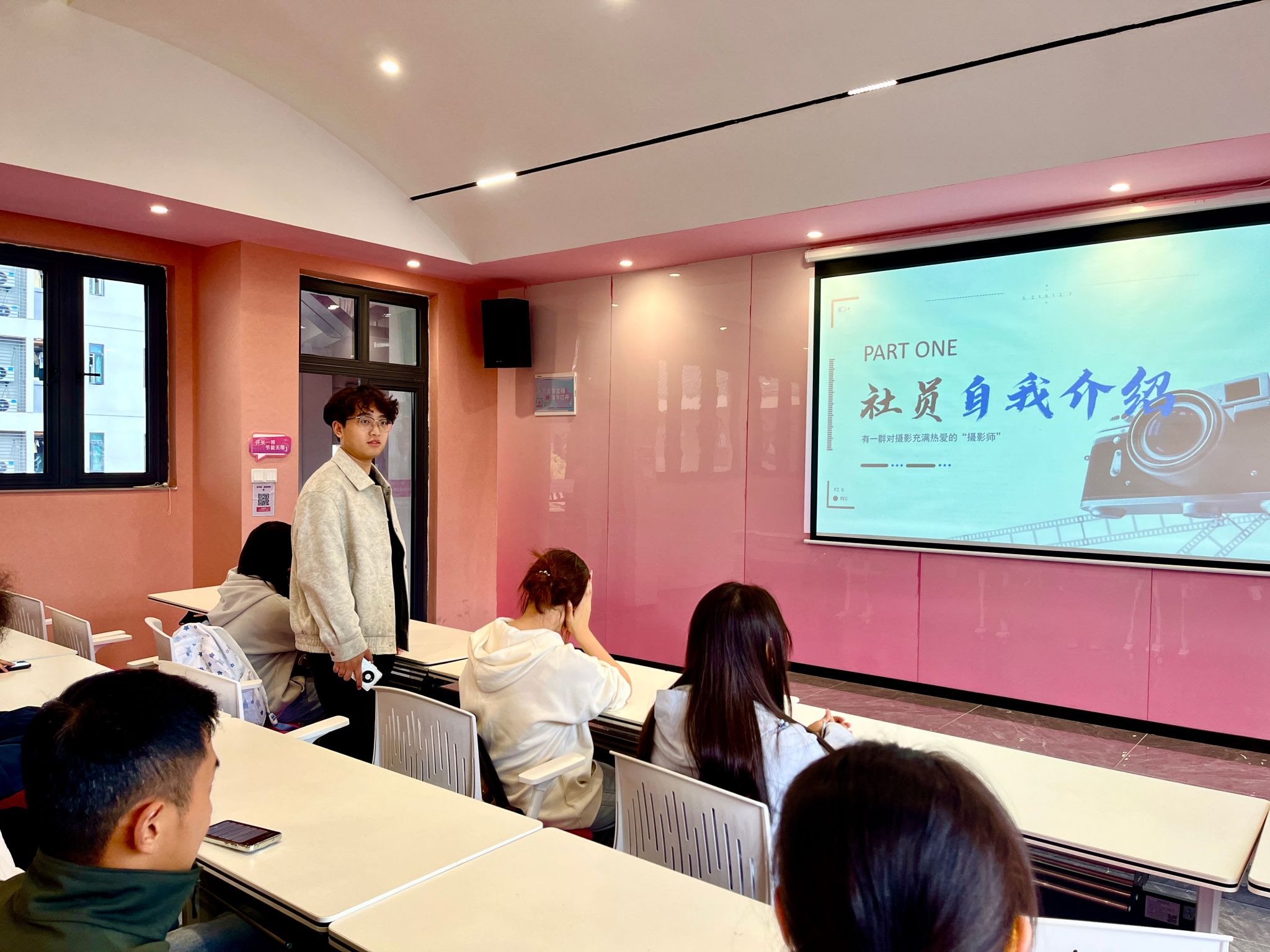 2025年10月26日,社团线下见面会热闹开场,十几位“镜头发烧友”带着设备和段子,开启了新学期的影像狂欢。见面会上,戏剧影视学院RF视界影像社的新社员小沈举着相机,用风趣的自我介绍逗笑全场。“我拍猫能拍出它偷偷翻垃圾桶的‘犯罪证据’,拍人……暂时还没猫配合。”