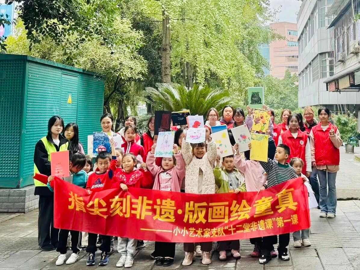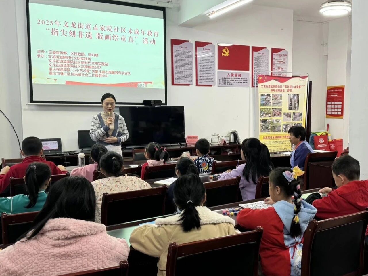 为传承中华优秀传统文化,让非物质文化遗产保护理念浸润童心,同时提升儿童文化素养与动手实践能力,戏剧影视学院小小艺术家关爱儿童服务专项支队于10月26日走进孟家院社区,正式开启指尖非遗·版画绘童真——“十二堂非遗课”系列活动的第一课。