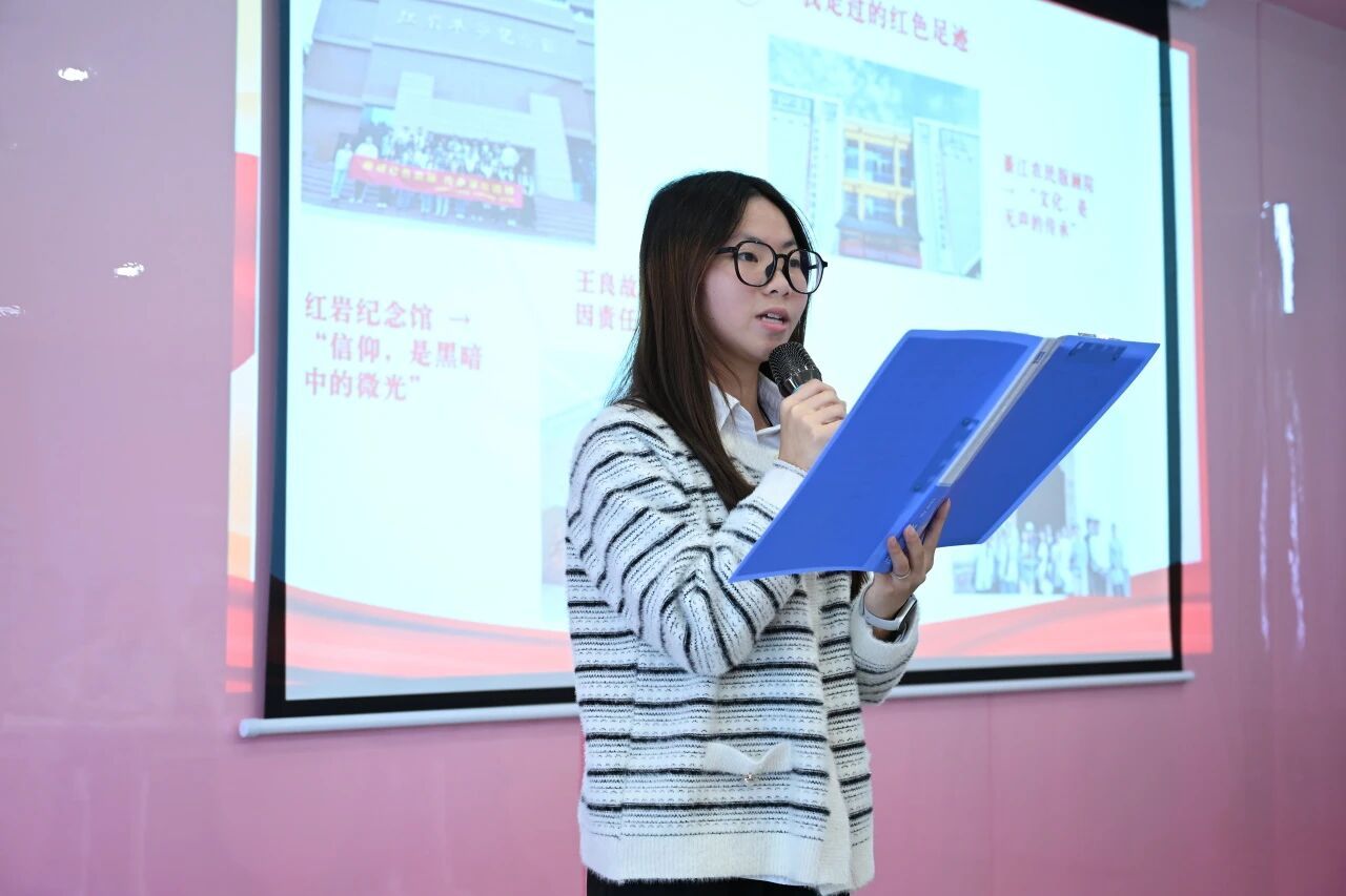 培训伊始,戚娟同学结合影像资料,展开红色历史专题宣讲。首先系统地梳理了渣滓洞作为革命斗争前沿阵地的历史背景,深入剖析其中蕴含的“坚守信仰、不屈斗争”精神内核。随后,在播放渣滓洞等相关红色纪录片段环节中,带领全体团干部们深刻感悟革命先烈忠贞不渝的理想信念与百折不挠的斗争精神,重温革命先辈的奋斗历程,以此激励团干部们时刻以革命先辈为榜样,锤炼意志品格,为实现中华民族伟大复兴贡献青春力量。