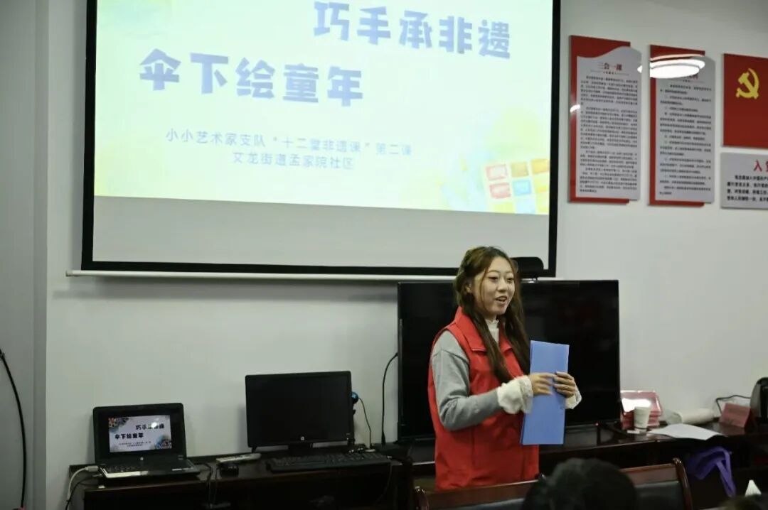 为传承中华优秀传统文化、厚植红色基因,推动非物质文化遗产保护理念与红色精神深度浸润童心,切实提升儿童文化素养与动手实践能力,戏剧影视学院小小艺术家关爱儿童志愿服务专项支队于11月9日走进孟家院社区,开启 “十二堂非遗课”第二课——“巧手承非遗·伞下绘童年”油纸伞绘画体验活动。