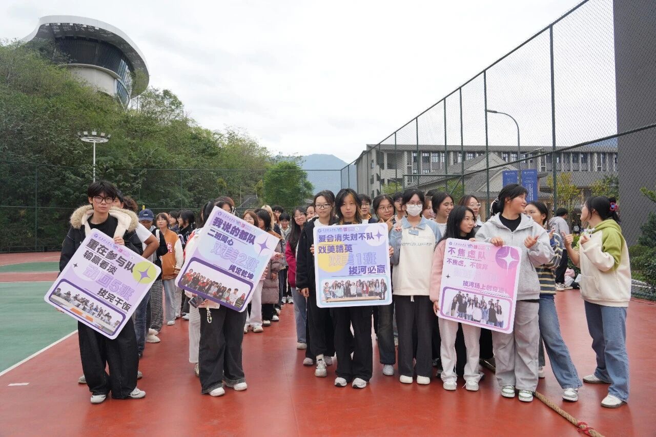 本期由动画5班、新媒体技术1班、戏剧影视美术1-2班参与。在裁判说明规则后,各班按男女比例确定参赛队员,由各班代表“手心手背”分组对战。赛中,队员们躬身凝力、拼尽全力,场边啦啦队助威声如潮,交织成热血乐章。最终,新媒体技术1班夺魁,戏剧影视美术1-2班获亚军,动画5班获季军。赛后各班有序签退,活动圆满结束。此次比赛不仅丰富课余生活,更增强了班级凝聚力。