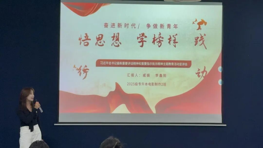 为深入学习贯彻习近平总书记最新重要讲话精神,引导青年学子明确新时代使命任务、勇担时代重任。戏剧影视学院2025级电影制作专升本02团支部于2025年10月22日在綦河银河·影音室开展以“凝聚青春力量·践行时代担当”为主题的理论知识宣讲活动。